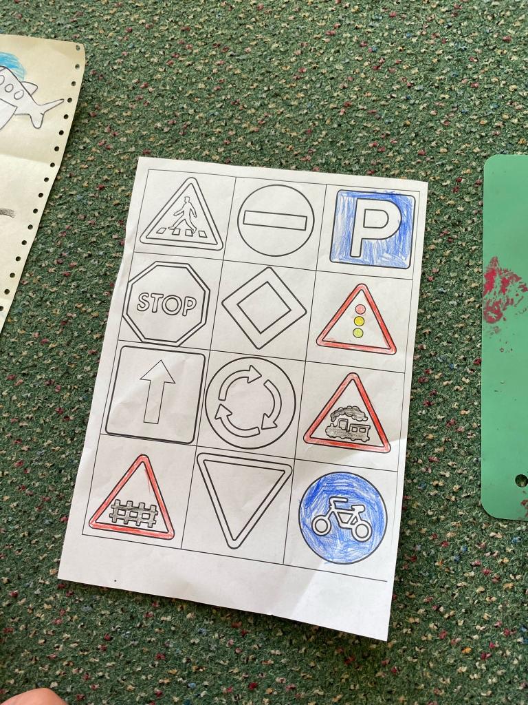 Ve druhé polovině tohoto měsíce jsme si povídali o bezpečnosti na silnici, jak se chovat v různých situacích a umíme poznat různé dopravní značky.