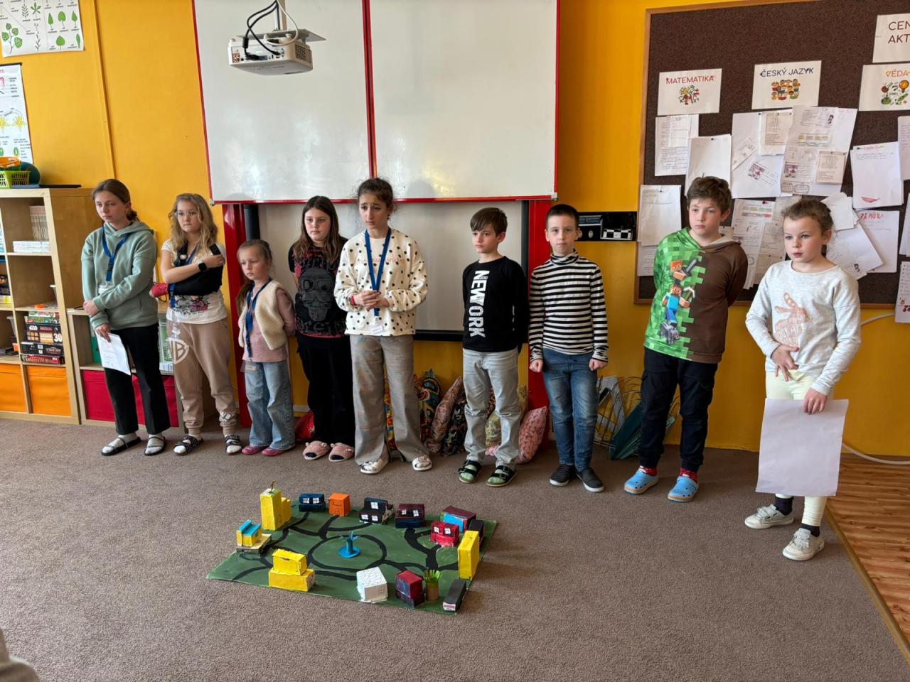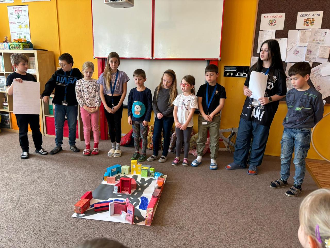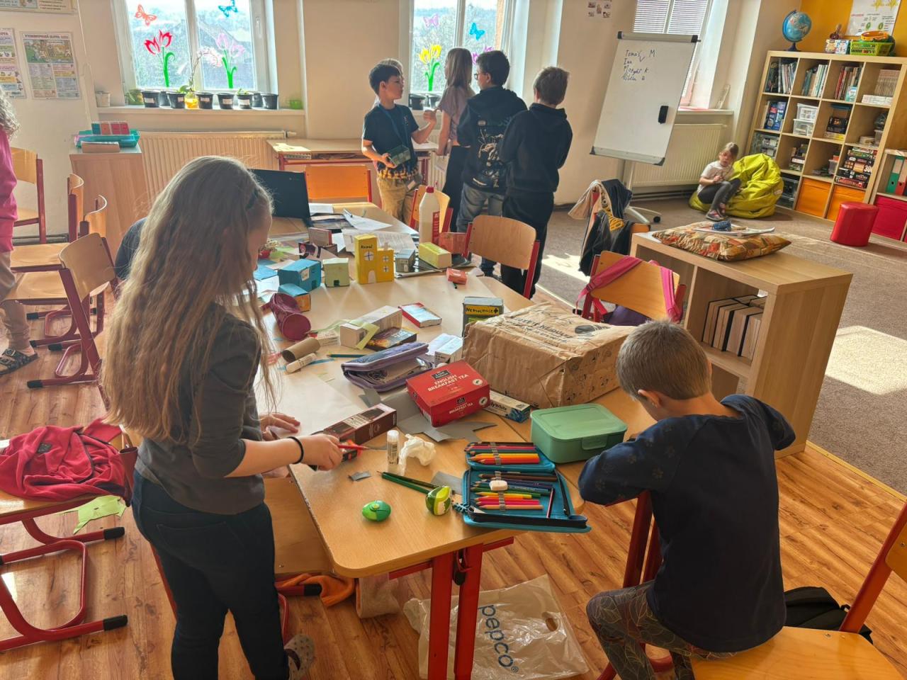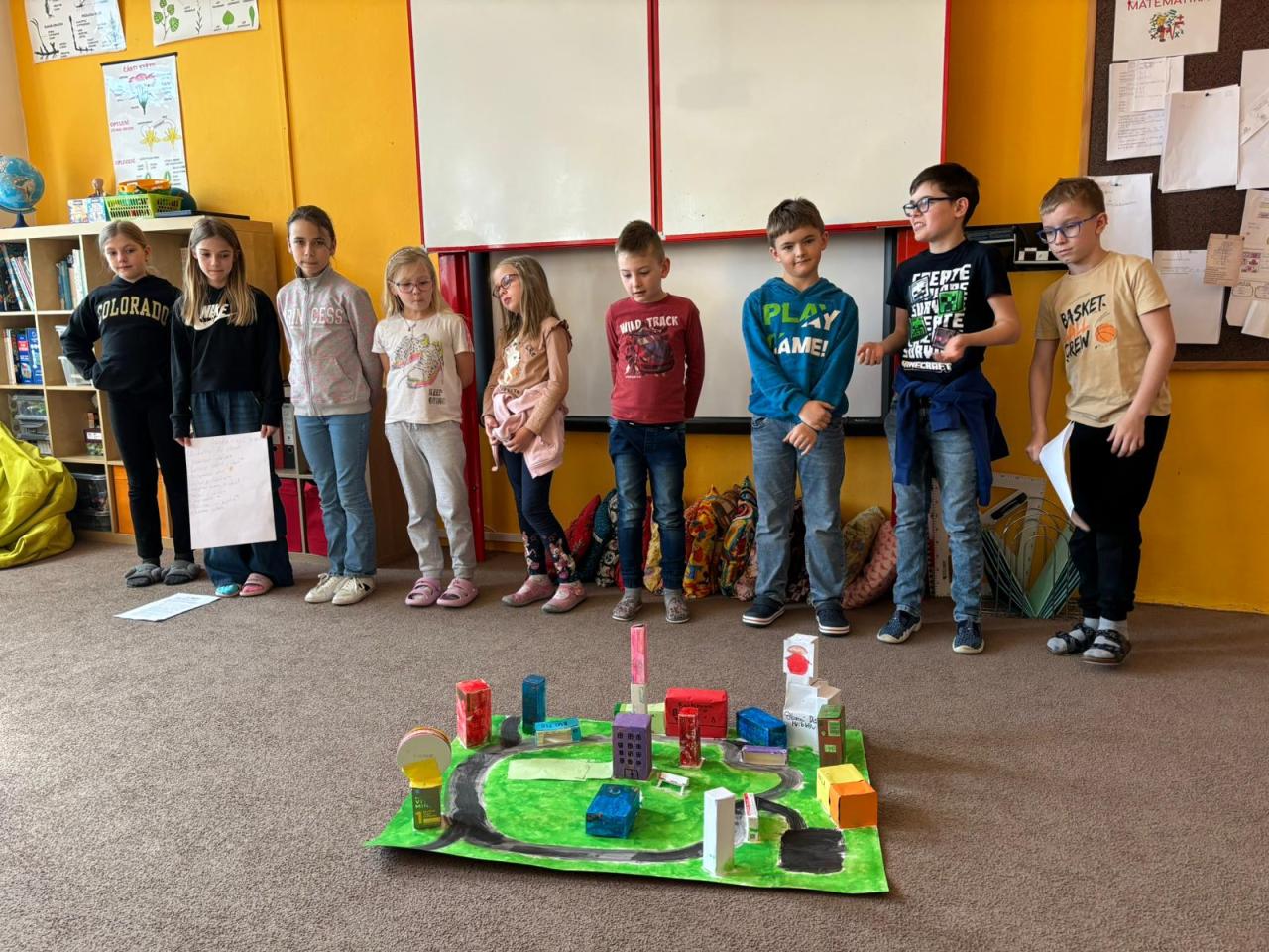 Před Velikonocemi jsme stihli ještě projektový den na téma Tady jsem doma. Vycházeli jsme tentokrát z průřezového tematu - Výchova demokratického občana, žáci měli za úkol postavit svou vysněnou vesnici, zvolit si pravidla a také starostu. Naučili se, co jsou to demokratické volby a jak probíhá hlasování, i jak je náročné sestavit vesnici a pravidla soužití tak, aby uspokojila většinu obyvatel.
